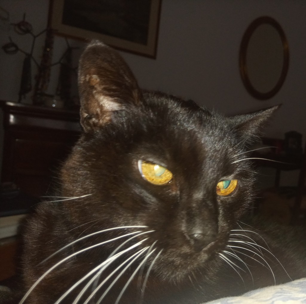 E come quasi ogni mattina, sul divano mi ha raggiunto il gatto, la gatta veramente. E’ una vecchia gatta nera che va per i vent’anni, dico vent’anni, mica bruscolini. Ma sta bene, benissimo, ha ancora tutti i denti, il pelo lucido e morbido, un po’ cicciotta ma la faccia da gattina. Sul divano si arrampica, non ci salta più su, alla sua età, si avvicina e si lascia cadere, si abbandona, al mio fianco. Appoggia la testina nell’incavo tra la gamba e la pancia e comincia immediatamente a fare le fusa. Se non sono più che pronto a carezzarla, o se smetto anche solo per un attimo, tende la zampa a cercare la mia mano. Lei vorrebbe essere delicata ma ha le unghie sempre affilate, sicuramente non gliele tagliamo abbastanza spesso, e si fa sentire. Ho la mano sinistra piena di segnetti marroncini a ricordo di carezze non abbastanza rapide.